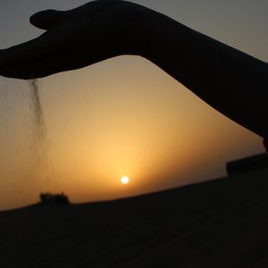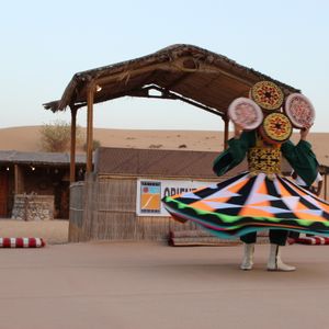 キャンプ場に着いたら、砂丘の斜面を一気に滑り降りるサンドボード、美しい模様のヘンナ・ペイントを描いてもらったり、UAEの国鳥である鷹を腕に乗せて写真撮影、水タバコを吸って休憩したり、土産屋で見かける瓶詰めの砂絵を間近で作ってもらう等して楽しい時間を過ごします。