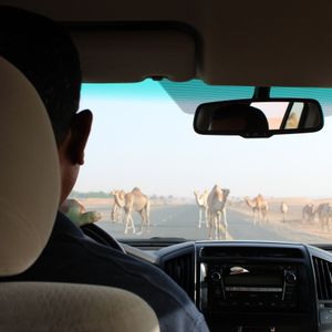 砂丘ドライブは、時には前後左右に激しく揺れ、まるでロデオ感覚でとても面白かったです。なので道中も楽しくあっという間にラクダ農場へ到着。ここでは沢山のラクダを見ることができ、ラクダと一緒に記念撮影も。可愛かったです。