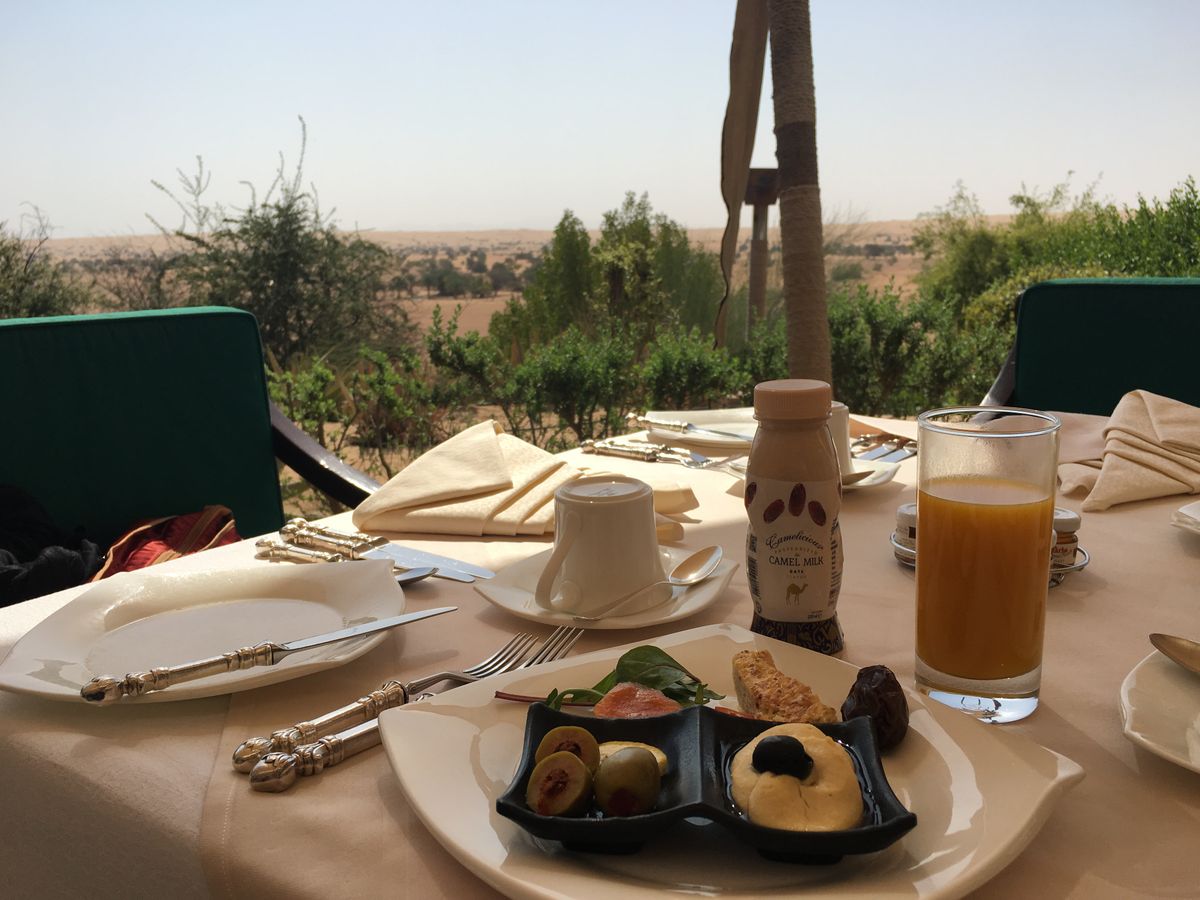 はるかに広がる砂漠を見ながらの、ホテルでいただいた朝ごはんは美味しくて、一休みになります。