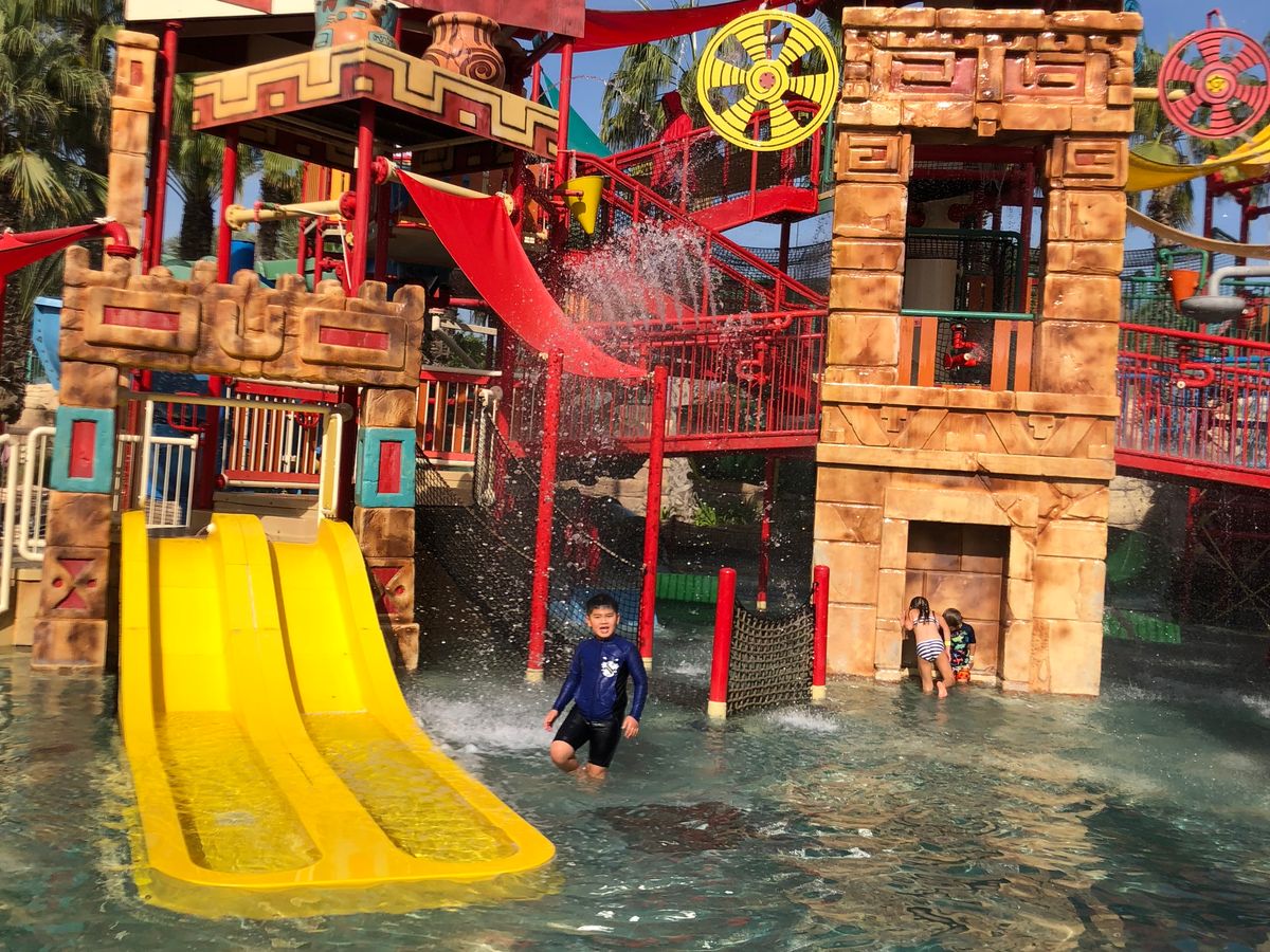 日帰りで遊びに行きましたが、ホテルに入ったところから素敵でワクワクしました!我が家は5歳と2歳連れだったので、キッズエリアにほとんど居ました。滑り台も何個もあり、楽しんでいました。流れるプールにも行きましたが、緩い方のコースでも波が来るので、2歳は泣いていました。我が家にはまだ早かったですが、とても楽しいプールだと思います!