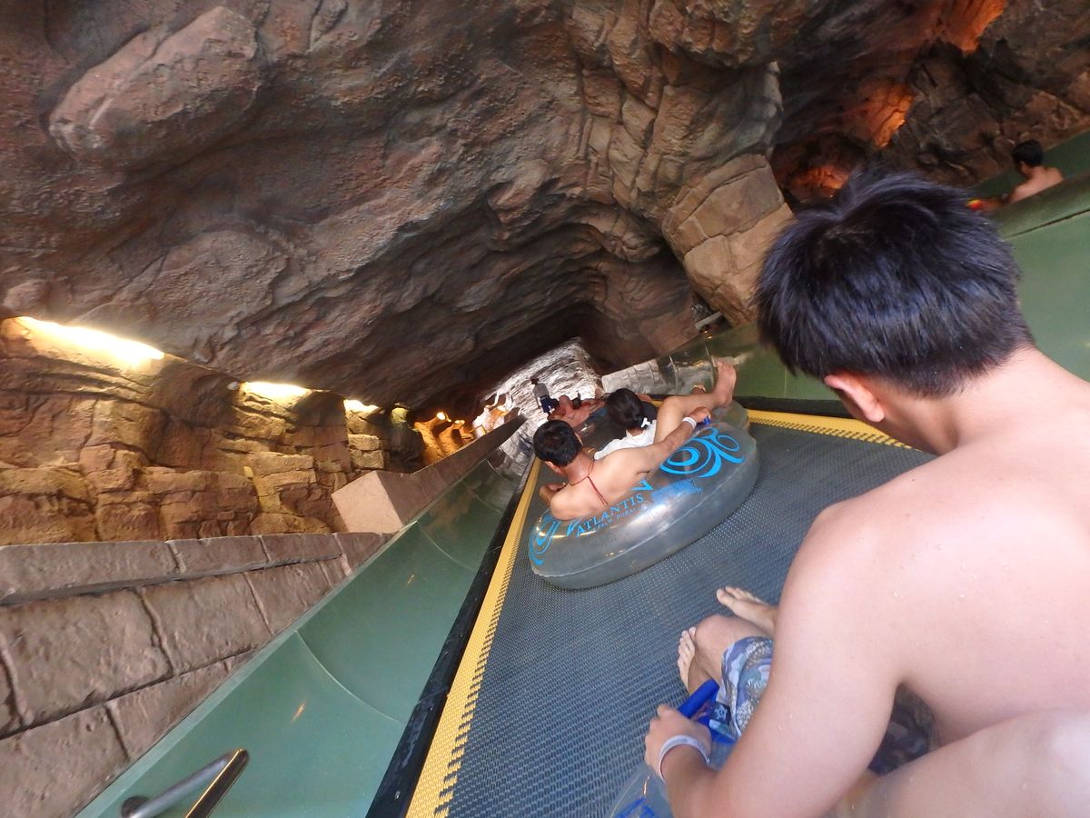 アトランティスホテルのアクアベンチャーにいってきました!プール内は広くてサメや魚がいっぱいの水槽トンネルをくぐるウォータースライダーや、フリーフォールスライダーなどが乗り放題でとても楽しめました!