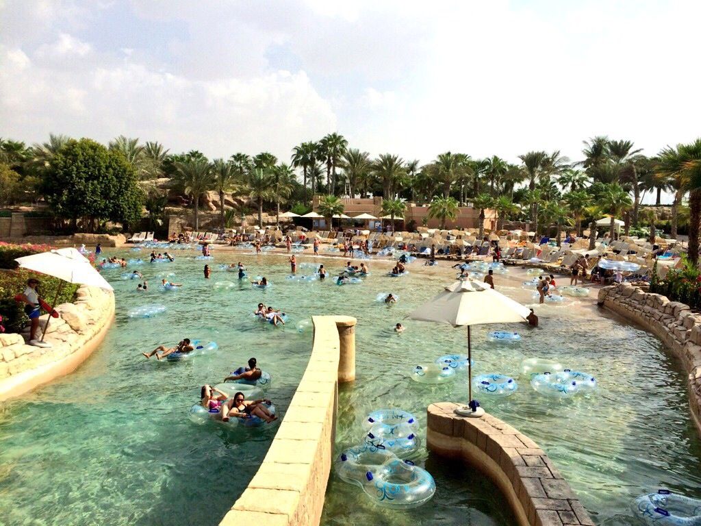 すべてのスライダーが大きな流れるプールに直結しているので、