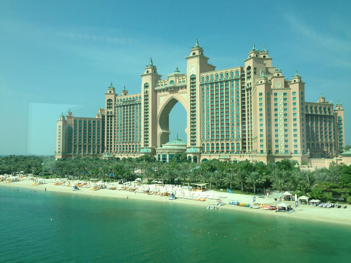 パーム・ジュメイラの外側に建ち並んでいる高級ホテルを眺めながら、アトランティックホテルの前で写真タイム。ガイドさんがベストの角度で何枚も写真を撮ってくれます。