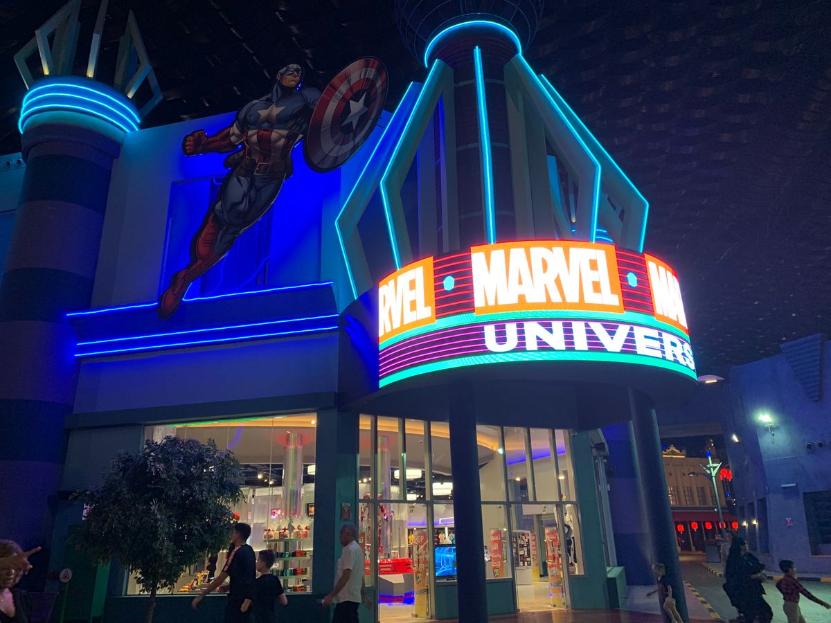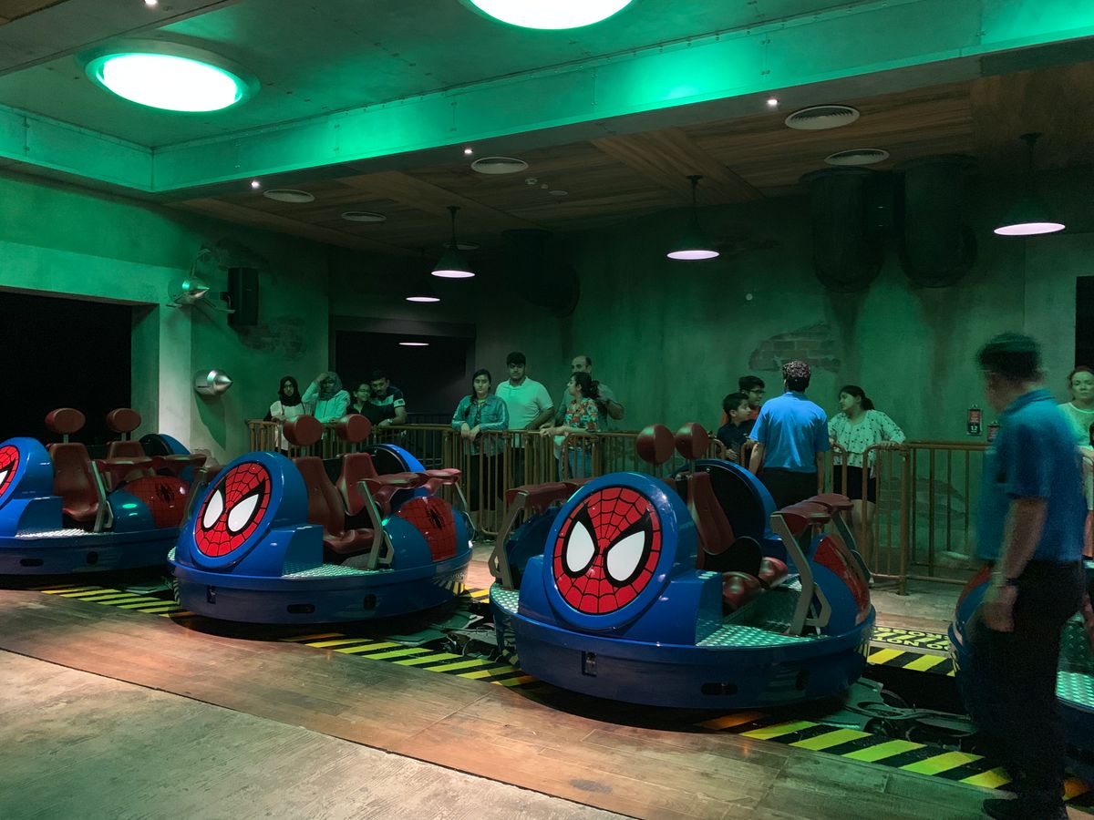 中学生と小学生の子連れで行きました。現地の週末の金曜日に行ったので混雑を覚悟していましたが、夜遅くまでオープンしていることもあって、現地の人は午後2時くらいから押し寄せ始め、それまでは待ち時間ゼロでアトラクションに乗り放題でした(笑)。以前に子どもたちとアブダビのフェラーリワールドに行きましたが、アトラクション自体はフェラーリワールドのほうがスリルがあります。IMGワールドは身長制限があまり厳しくなく、140cmのアトラクションが1つある以外は105cmや120cmが多く、小学生の息子も殆ど乗ることが出来ました。また息子がアベンジャーズなどのマーベル好きなので、それだけでも楽しかったようです。
