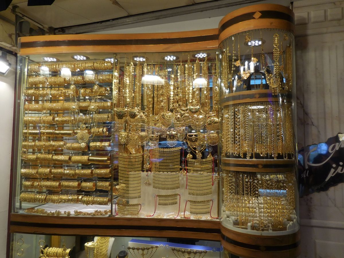 スークでは買い物の補助もしてくれます。ドバイモールで値段を比べてわかりましたが、スークの交渉後価格のほうが安かったです。金の価格は比べてないのでわかりませんが織物はスーク内のほうが安そうです。