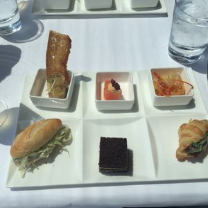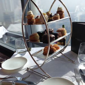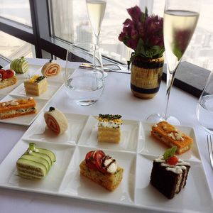 アフタヌーンティーの構成は、最初に小さな前菜、綺麗なサンドイッチ、小さなメイン(肉か魚)、最後にデザートでした。満足のいく内容でした。お値段は一人15000円位とかなり高価でしたが、2時間程も圧倒的な眺望と素敵なお料理、バイオリンの生演奏を堪能出来ましたので大満足です。