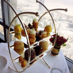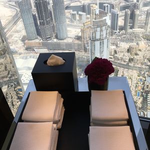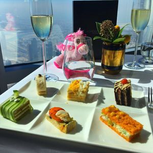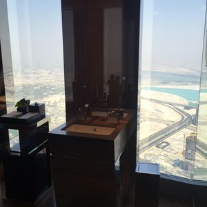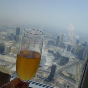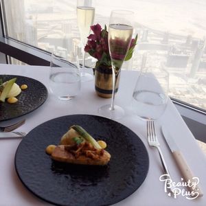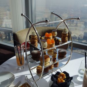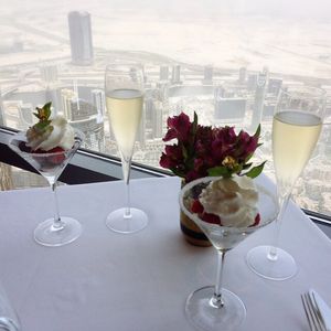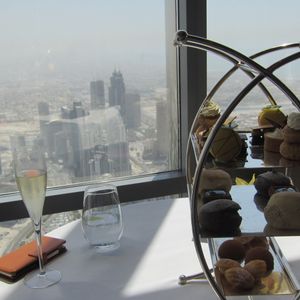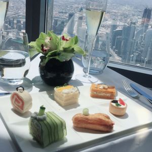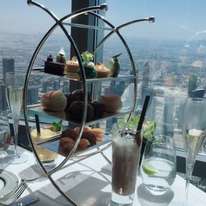 アフタヌーンティーを予約しました。世界一のタワー123階からの景色は、近未来的なビルディングと昔の姿を残す砂漠とが一望できますので、少し高くても窓際席をお薦めします。料理もアフタヌーンティーというよりも贅沢なランチのように時間をかけてゆっくり頂くので動けないくらいお腹一杯になりました。スタッフはとてもフレンドリーで、特に飲み物のチョイスが素晴らしく、感動の連続でした。また、生のヴァイオリン演奏もあり、テーブル席まで来てくださいました。最後にトイレから見える景色も素敵でしたので、帰りには是非行かれてみてください((笑)。