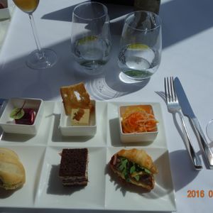前菜はフォアグラのパテ,サーモンのサラダ,ミニサンドウィッチなどなど…どれも美味でした!