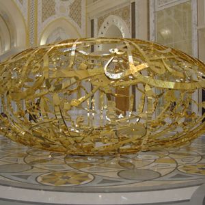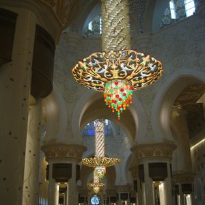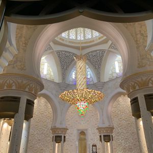 朝早かったせいもあるのか、絶景ポイントとされる場所は靄がかかり、ほとんどきれいに見えず。その後、ルーブル・アブダビへ。本家のルーブル美術館へは行ったことがないのでどんなものかわかりませんが、絵画が少なく、絵画鑑賞好きな私としては少々がっかりしました。昼食はビュッフェで、お味は可もなく不可もなくといった感じでした。そしてメインのモスクへ。服装の注意があらゆるところで書いてあったのでいろいろと持って行ったのですが、意外と厳しくなく…足首が思いっきり出ているスカートの方、ぴったりしたジーンズの方もいらっしゃいましたが、特に注意されることなく入場できていました。上着は皆さん着用されていましたが(ぴったりするカーディガン程度の方も)髪もストールで何となく隠していればいいような?!男性も欧米の方は膝くらいの短パンの方もいらっしゃいましたし。ただセキュリティチェックだけは空港のようでしたが。靴を脱いで入れると書いてあった、ペルシャ絨毯張りの部屋には入れなくなっていたのが残念でした。