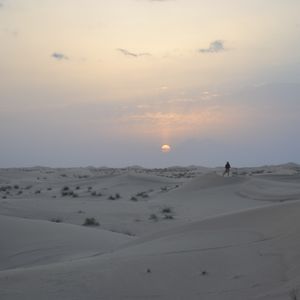 夜明け前の砂漠は思いの外寒いので、防寒は必要だと思います。