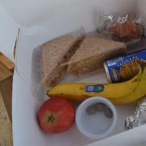 朝食用にボックスにサンドイッチや果物など準備してもらったものをAl Qudra Lakeで食べました。