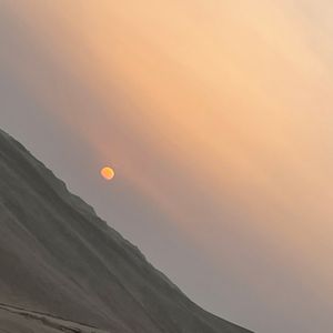 砂漠に行く途中に赤くてまん丸の朝日が見れました。