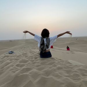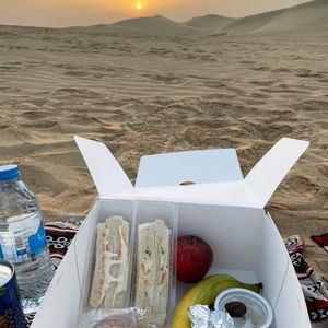 砂漠ツアーでは、噂通りのジェットコースターのようなスリリングさでした!高い砂丘から一気に降ったり、斜面を走行したり。しかしドライバーさんのドライビングテクニックが見事なのがわかったので、心配せずただ楽しむことができました。たまに「Are you ok?」とちゃんと聞いてくださる安心感もあり、車酔いもせずに済みました。(音楽をかけていたのも良かったのかもしれません)