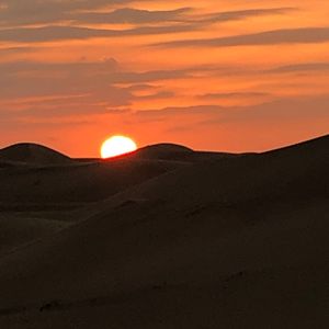 初めての砂漠は暑くて食べ物は正直なところあまり好みではありませんが、砂丘のサンセットは素敵でした。