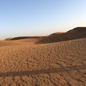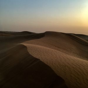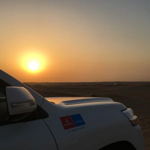 1時間くらい車で砂漠に移動します。そこでトイレ休憩。その後ゆっくりと砂漠を15分程度走ります。それから、20分位ジェットコースターのように砂漠を車で走ります。酔い止めはMUSTでしょう。夕日の砂漠は、幻想的。当たり前ですが、見渡す限り砂。茶色の砂と夕日の橙は見たことがない映像です。