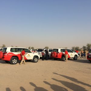 途中で何台ものランドクルーザーが合流して最後の食事の拠点では50から100台近く、数百人の団体になります。団体ツアーっぽい雰囲気になりますが、ラクダ体験や鷹との記念撮影、ヘナタトゥーなどを体験できる時間は十分にありました(ただし1つ1つのイベントは短時間です)。他の国の同様のツアーと違い、特にチップを求められることもなく(欧州のお客さんがチップを払っているのも見かけましたが、少数でした)安心して楽しむことができました。