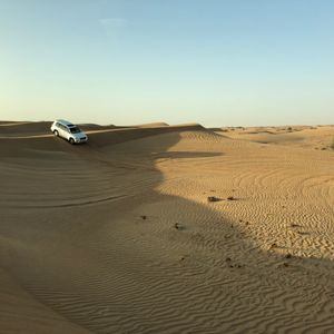 ランクルでのお迎え、席は2列目でした。我々が英語不得意のためか行きの車内は静かでしたが、デザートサファリが開始するとアラビアンな音楽が流れ、子供用ジェットコースターに乗っている感じでフロントガラスに迫り来る砂漠に興奮。とても楽しめました。フォトスポットではガイドさんにお願いすれば写真を撮ってくれます。キャンプサイトに行ったのが最後の方でしたが、サンドボードやラクダ、ヘナタトゥーとアクティビティもできました。ソフトドリンクが炭酸系しかなかったのが残念でした。