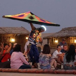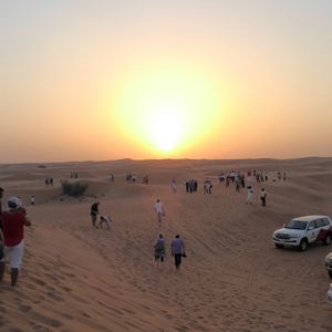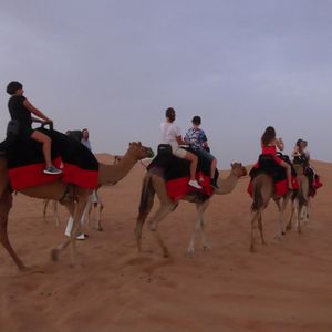 夫婦での参加です。ピックアップは少し遅れましたが、インド人家族との混載でスタートです。英語は苦手ですが、ドライバーの兄さんが茶々を入れてくれるなど、和やかな車内でした。デザートサファリは、アップダウンやドリフトなど思わず声が出ます。砂漠でのサンセットの後は、キャンプ地でベリーダンスなどの夜の宴で盛り上がりました。帰りはドライバーが出口で待っていてくれましたので、心配なしでした。アラビアンな体験を満喫出来ました。一押しのツアーです。