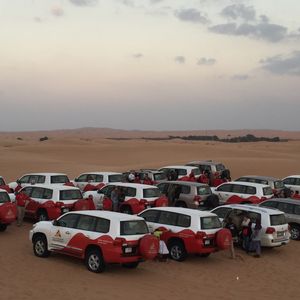 30台近くもの4WDが連なり砂漠を走る様子も圧巻!