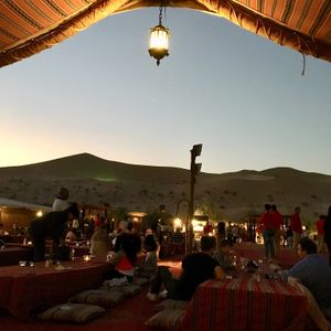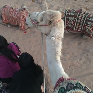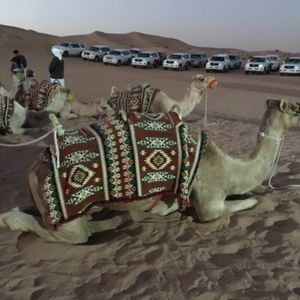 ドバイの街中では体験できない砂漠での体験(*^^*)とても楽しかったです。らくだに乗ったり、砂漠を車で走り回ったり、砂漠のサンセットも美しかったです。。観光客用に作られた場所で、美味しい夜ご飯も頂き、ヘナペイント、ベリーダンス観賞、水タバコ、どれも忘れられない体験です。一人での参加でしたがとても楽しめました。
