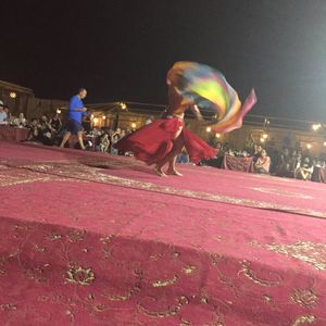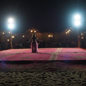 砂漠をランドクルーザーで激走するのは本当に貴重な体験でした。ラクダに乗ったりヘナを体験したり、その後の食事は暑い(夜でも40度!)けどこれまた貴重。踊りを見ながらいただくビュッフェは味もなかなかです。