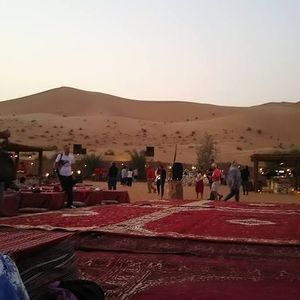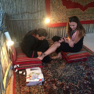 集合場所に迎えの車が来るのが少し遅れましたが、きちんと時間前に連絡をくれたので不安になることもありませんでした。ツアーは本当に内容がてんこ盛りで、お得です。砂漠をドライブして、ラクダにも乗れ、ヘナタトゥーもでき、さらにベリーダンスも見れました。
