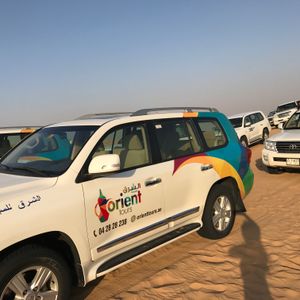 予約確定後送迎場所についての連絡をメールでいただいたのですが、宿泊してるホテルロビーへの送迎としていただけたので大変有難かったです。また、コンファームの際、「渋滞事情により多少の遅れが生じます」とありましたが、当日に「15分遅れます」という連絡が予め入り、海外とは思えぬタイムマネジメントに感心しました。車はランドクルーザーで清潔でした。2時間ほど走って砂漠地帯へ入り、縦横無尽に走行してスリル満点、高低差があるところではジェットコースターに乗っているように楽しめました!その後はラクダに乗ったり、水タバコ、民俗衣装、エンナペイントなどを一通り体験し、夜は迫力満点のファイアーショーとベリーダンスを真近で見ることが出来ました。ブッフェスタイルの夕食も息子はチキンを何度もおかわりをし、私たちはアルコールもあったので十分満足できました。ドライバーの方は朗らかで楽しく、こちらのペースを気遣って下さり大変有難かったです。オススメです!