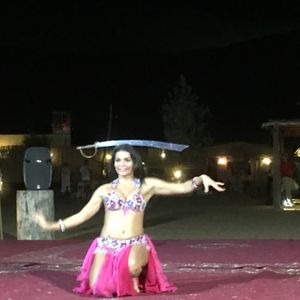 それから、男性のダンスショー→食事→女性のダンスショーとあり、ツアー終了。食事は美味しくはなかったです。履くものに迷いましたがビーサンで行き、砂が熱かった時のために足が覆われるタイプのものも持っていきましたが、砂も熱くなかったしビーサンで何の問題もありませんでした。小さいお土産屋さんがあり買いたいものがありましたが現金がなくて、カードだと100ディラハム以上買わないと使えないという事でそんなには買うものがないのであきらめました。楽しかったですが、色々出来なかったのでまたリベンジしたいです!!