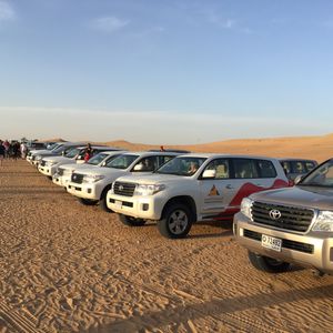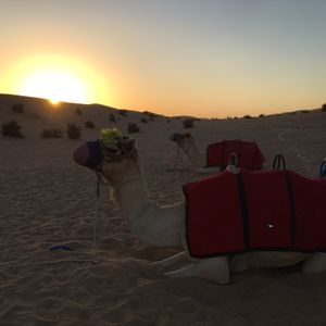 Dubai滞在3日の弾丸ツアーだったので参加すべきか迷いましたが、行って正解!時間通りのピックアップで、砂漠へと向かう車中も左右に見えるものなどを説明してくれました。入り口で20台ほどのランクルと合流し中に入りました。砂漠ドライブも楽しい位で丁度いいほどのスリリングさ、夕日のタイミングもバッチリ、着いた村もとても素敵な雰囲気でした。少し心配だったトイレも清潔だったし、BBQも悪くなかったです。途中で勝手に撮られる写真屋さんもお店を広げてますが、購入を迫る事はありませんでした。ゆったりした雰囲気の中、ヘナやラクダ乗りも出来ました。全てのプログラムが終わると帰路につきます。1時間程でホテルまで到着。すっかり寝てしまいました。1人で参加しましたが、楽しめました。途中、車を乗り降りするのですが、皆同じような車なので、自分の車のナンバーなどは覚えておかないとあたふたしますよ。