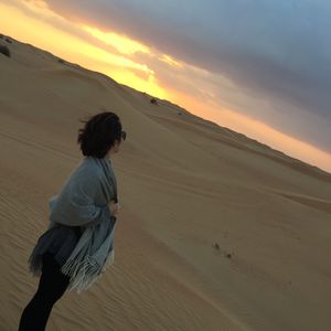 ドバイの砂漠ってそんなに大きいものじゃないかと思っていましたが大間違いで、とても広くて見渡す限り砂でした。しかもアップダウンの険しい砂丘をランクル4WDでスリル満点のドライブ!本当にここならではの体験でした。時間もちょうど良く太陽が沈む瞬間を砂丘の上で見ることができました。3月で季節も良かったので砂が冷たくて気持ちのいいこと。前半だけでも十分楽しめました。後半はラクダ試乗(軽く1周?)とベリーダンスにアルコール。飲み放題なので気分は極楽。お酒の厳しいアラブではご法度かもしれませんが、外国人にとってはこれ抜きでは語れませんね。インド人もアメリカ人もイギリス人も飲めば友達。世界中の人たちと楽しい一時を過ごせました。また行きたいです。お勧めです。