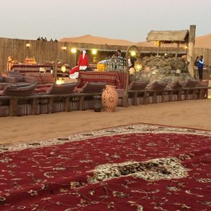 砂漠に絨毯を敷いてその上に机を置き、いい感じの硬さのクッションに座ってごはんをたべる感じも趣があってよかった!!