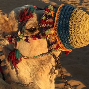 ラクダに乗り、ヘナアートと水タバコに、民族衣装も着せてもらいました。