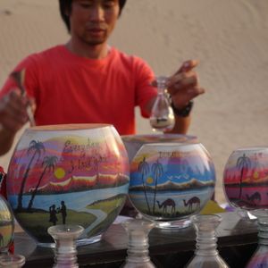 砂アートは小さいので30AEDくらい、中で50AEDくらい、大で80、さらに大きいので100位しますが、名入れを無料でしてくれたり、複数買うと値引きもしてくれました。