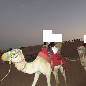 タイムスケジュール:約1時間で砂漠到着(途中トイレ休憩)→空気抜き中写真等(15分)→ドライブ→sunset写真ポイント(15分)→ラクダ農場・撮影(15分)→キャンプ地でactivityと食事(2時間)→帰路はハイウェイ利用(45分)
