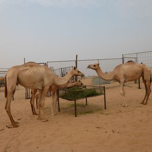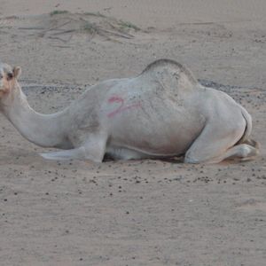 ホテルを出発して30分もすると周りの景色が変わり、やたらと電線が多い場所に。車も走っている数が少なくなってきました。途中、ガソリンスタンドとコンビニがある所で他の車を待つと言われトイレ休憩と、飲み物を購入しました。20分位で再び出発しました。途中で放し飼い(?)のラクダが数匹道路脇を歩いていました。15分も走ると目的地のようです。
