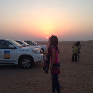 一人で参加しましたが、同じ車にのったイギリス人の家族とともに行動させてもらいました。クリスマス時期なのですごい数の車がサファリに参加するので自分の車をチェックしておかないと迷子になります。後ろの席はいちばん揺れるので苦手な人は助手席か真ん中の席のほうがよいでしょう。アラビアンアドベンチャーはほかの同じようなサファリツアーより少し値段が高いですが、現地のツアーガイド曰はく、ワインやビールの飲み放題があるのはアラビアンアドベンチャーだけだそうです。途中で夕日が沈むのを見学できるように休憩がありました。やはりドバイにいくならサファリツアーは体験されることをおすすめします。砂漠の砂は当然さらさらなのでビーチサンダルなどのほうがよいと思います。