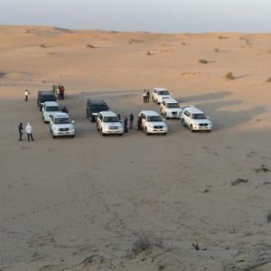 数台の車が集まりドライバーはタイヤの空気を抜きその間は乗客は写真を撮っていました。