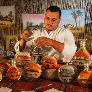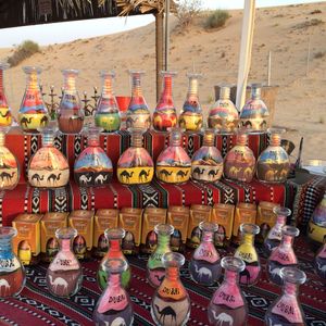 サンドアートは色を好みにオーダー、文字もアラビックにしてもらいましたが追加料金取られず、三つ買ったのでディスカウントもしてもらい、目の前で作ってもらえ大満足でした!