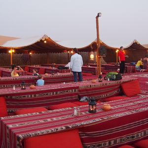 車で砂漠を走る他、ラクダを近くでみられるラクダファームによったり、自由にキャメルライド、水タバコ、サンドボードを体験することができました!お盆期間中に行きましたが混んでおらず全部体験できました。オリジナルのサンドアートを作ってくれるお店もありましたが高いので欲しい方はスーク等で買った方が良いかと思います。カップルでキャメルライドする方はツアーの人が写真をとってくれますが、その写真が欲しい場合、他の方の写真も入った高いデーターを買わなければならない…ということになってしまうので一緒にツアーに参加されている方に頼むといいかもしれないです。日本語ツアーではなく英語でしたが全然大丈夫でしたよ。