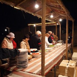 食事と飲み物は、キャンプにてアラビア料理のバイキングスタイルで食べ放題です。味も良かったです。