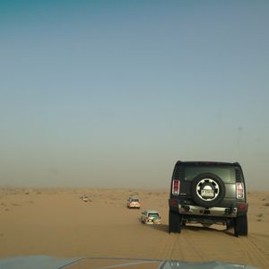親子で参加しました。4WD車でホテルを出発し、砂漠を走ってキャメルファームとベドウィンキャンプに行きます。