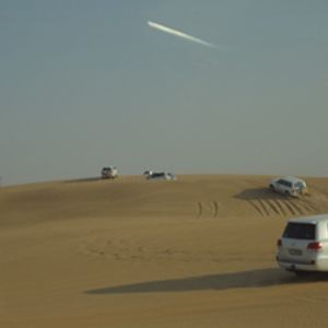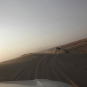 ランクルでホテルまで迎えに来てくれました。参加者は自分達のほかに日本人の方2名で計4人。砂漠で他の参加者達の車と合流し、20台くらいで出発します。砂漠の中をひたすらジェットコースターのように走るのですが、途中自分達の車でトラブル発生・・・タイヤが木の根っこに衝突してパンク。1時間くらい砂漠で待ちぼうけとなりましたが、今となってはそれもいい思い出です。日本ではなかなか味わえないので、1度は体験されてもいいと思います。