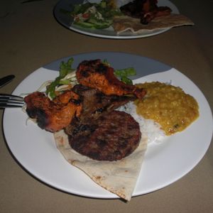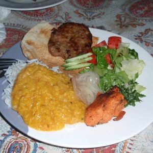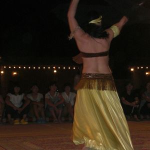 食事はビュッフェでカレーや肉、サラダなどでした。前後にはベリーダンスショーがあります。