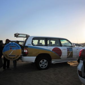 ホテルまでは6人乗りの4WDが直接迎えに来てくれます。みなさんのコメントを読んで、ある程度想像をふくらませて参加しましたが、4WDでの砂漠ドライブは想像をはるか上回る迫力で、乗り物酔いをしやすい人は酔い止め薬を飲んでおくこと必須です!!