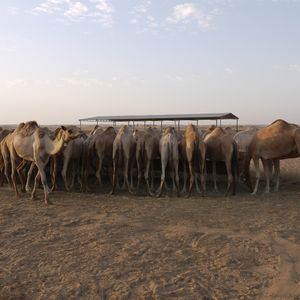 砂丘ドライブを楽しんだ後に訪れたラクダ農場では、間近でたくさんのラクダを見ることができ、最初はラクダに近づくのが怖かったけど、だんだん慣れてきてとても可愛かったです。