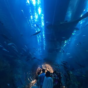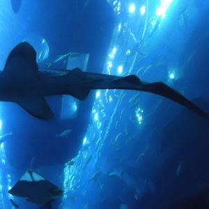 海中トンネル内にサメやエイが沢山泳いでいて、興奮しました。