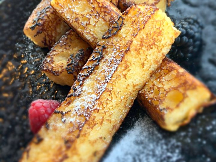 他にお客さんもいなくて、アトモスフィア貸切でドバイの景色を堪能しながらゆっくりと優雅に朝食をいただきました。最初に出てパンが美味しくて食べすぎてしまって、後の料理が食べきれなくなりました。メインはフレンチトーストとオムレツを頼んでシェアしました。