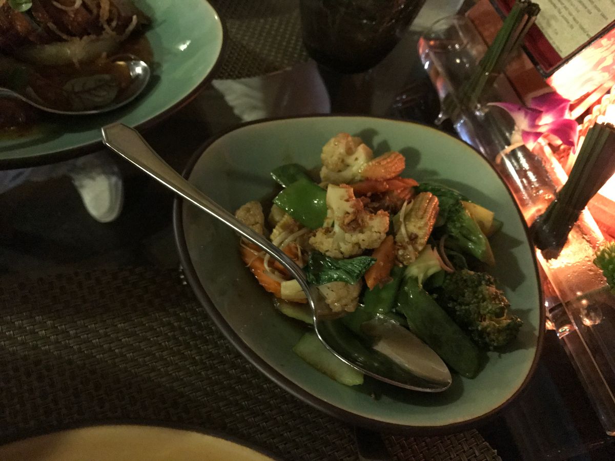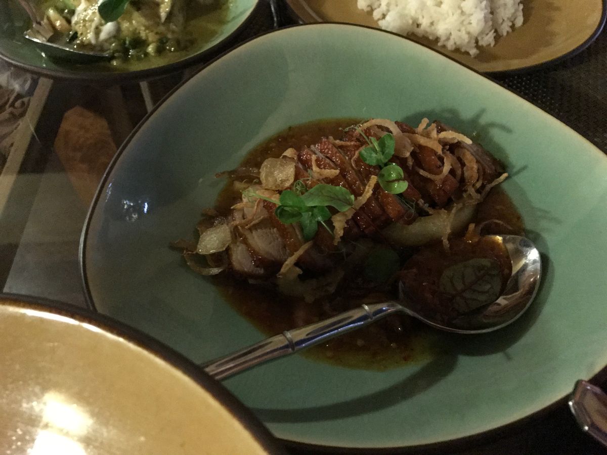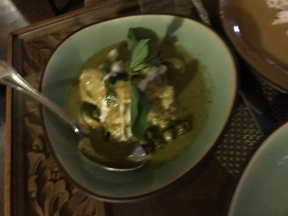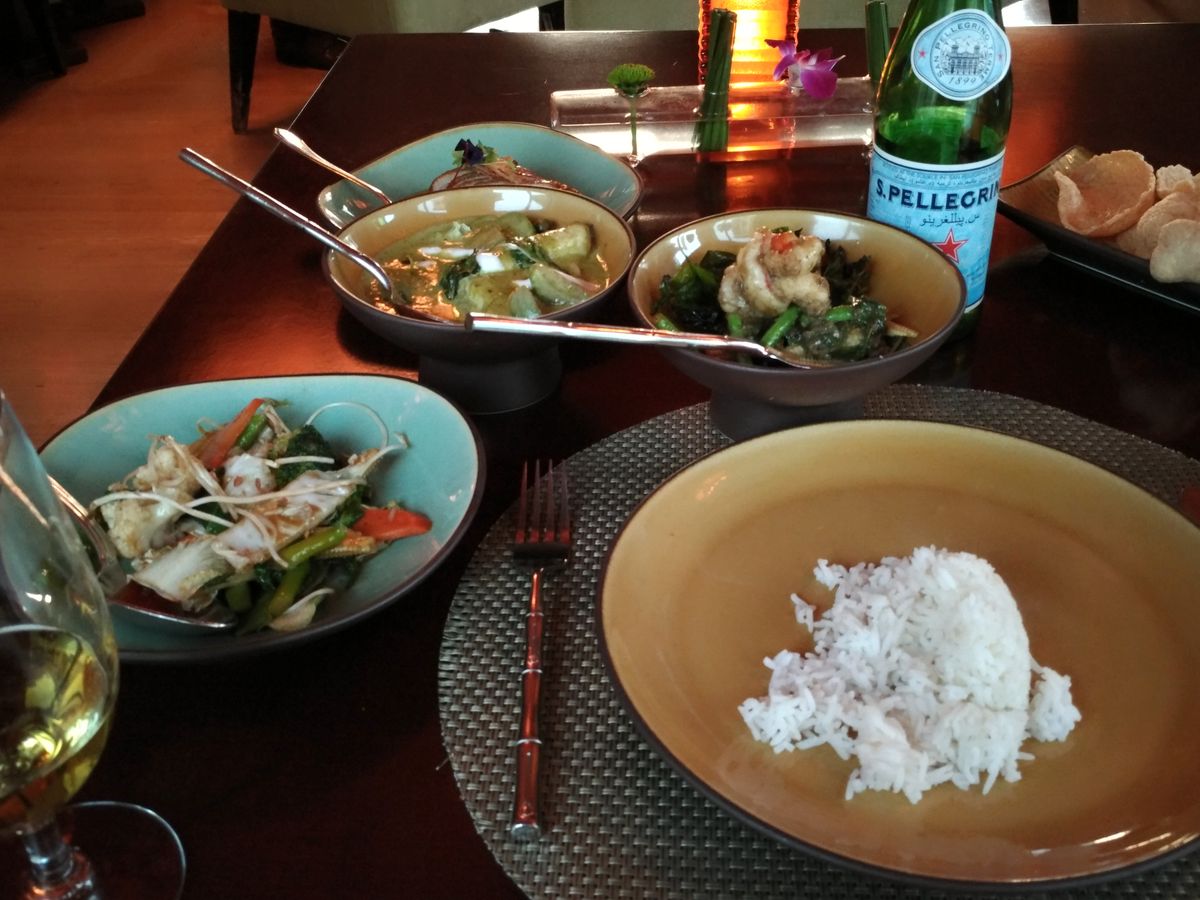 ディナーのタイ料理は、美味しいし、食べきれないくらいでした。帰りに宿泊しているホテルまでのタクシーをホテルマンの方に探してもらい感謝してます。良いホテルでの食事は、やっぱり全てに気配りされていますね。いつか、泊まってみたいです。