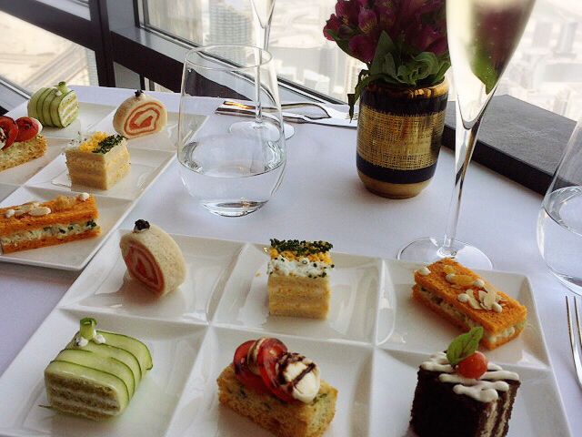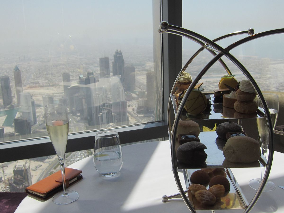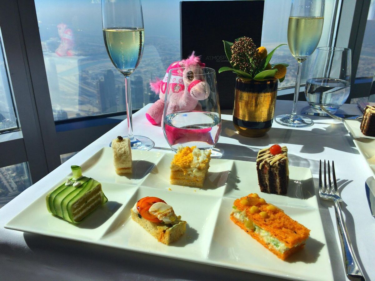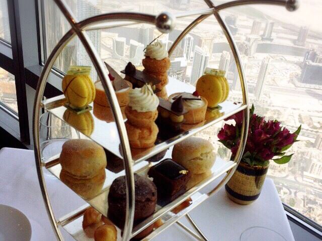 バージュ・カリファ内アルマーニホテルでのアフタヌーンティーは日本では体験出来ない超贅沢体験でした。アフタヌーンティーとして考えると高いですが、サービスは一流で、シャンパンとメイン(肉・魚選べる)のプレートがついているので、食事として考えれば(景色も含めて)妥当です。ゆっくりすることも出来るので、かなりお勧めです。
