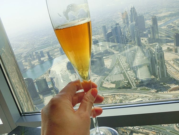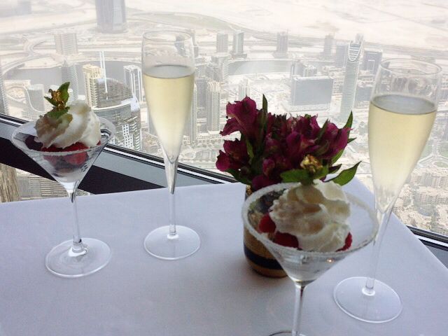 バージュカリファ122階からの景色をゆっくり見ながら食事ができて、単に展望台に行くよりもずっと価値があるのでは、と感じました。もちろん値段はそれなりにしますが、アルコールの高いドバイでスパークリングワインがボトルで飲めて、料理もおいしく頂けました。